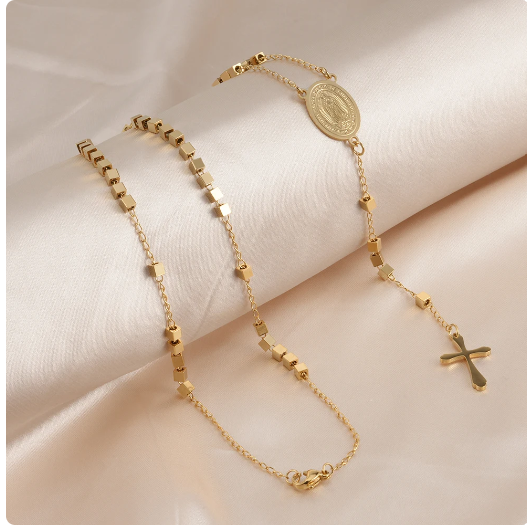 Descubre la fortaleza de la fe con esta camándula de acero de 3 mm con cuentas cuadradas, diseñada para durar. Elige entre la poderosa medalla de la Virgen de Guadalupe o la de San Benito, y lleva contigo un símbolo de protección y devoción. Una pieza resistente y significativa para tu día a día.
