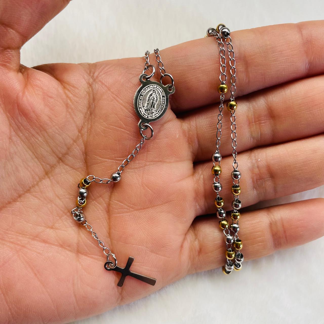 Acero-rosario cuentas pequeñas dorado y Plateado
