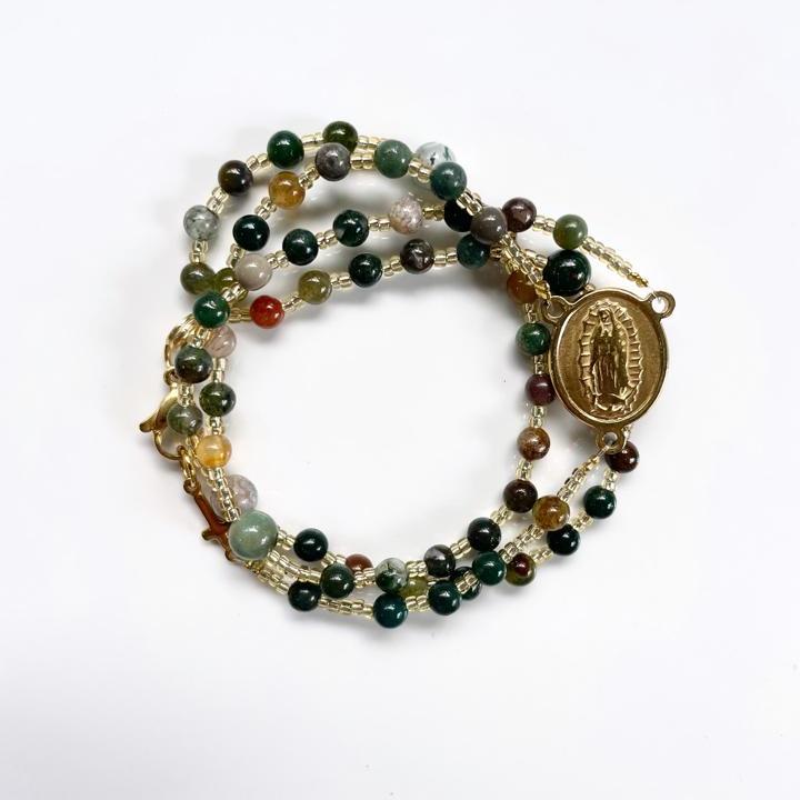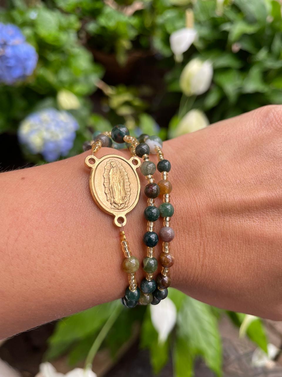 A rosary that evokes warmth and peace. Made with 3 mm green agate beads , this bracelet will remind you of the beauty of faith in its purest forms. Its high-strength thread ensures this piece is a lasting and meaningful companion for your daily prayer intentions.