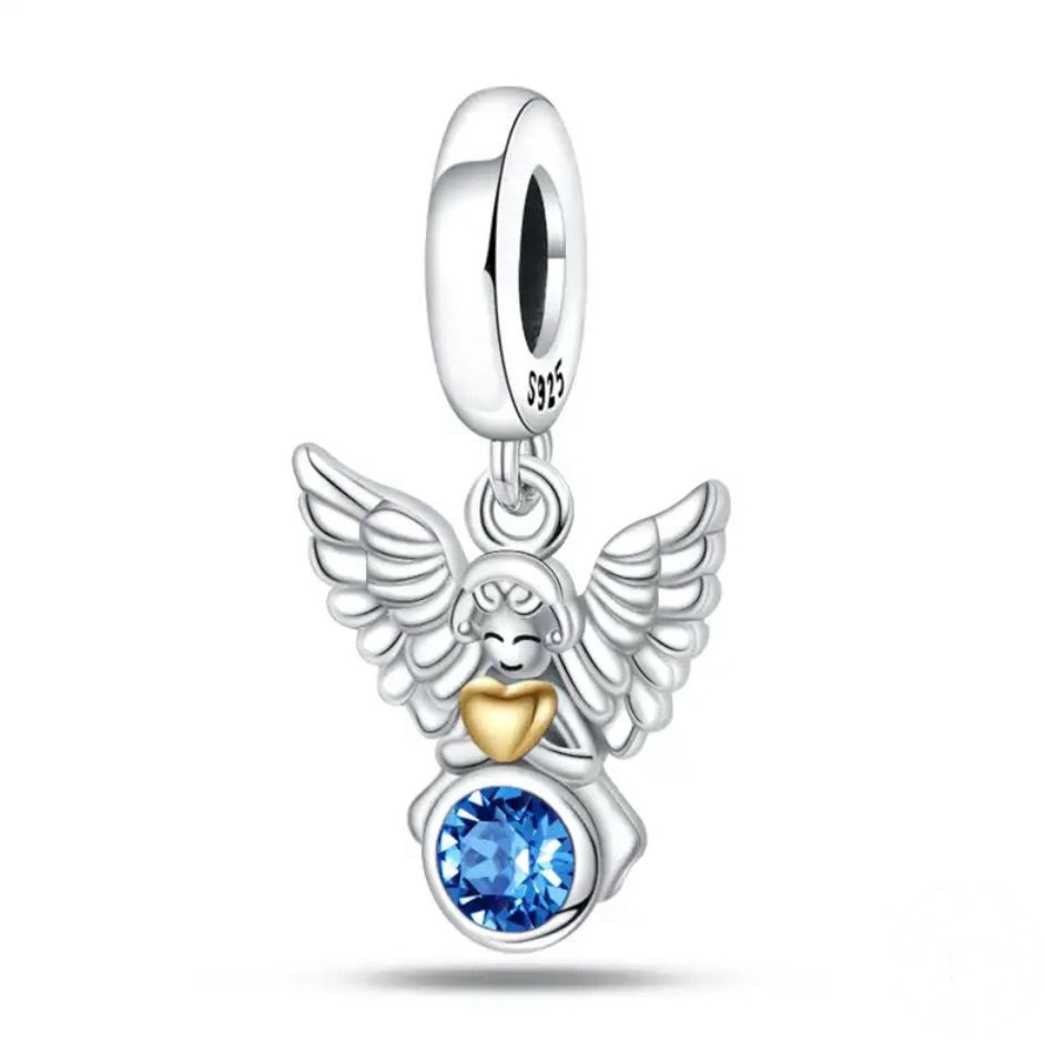 Descubre la elegancia y la fe en una sola pieza. Este delicado charm colgante de Plata 925 presenta un ángel guardián, adornado con una mística piedra azul y un corazón dorado. Es más que un accesorio; es un recordatorio de que siempre estás protegido. El complemento ideal para darle a tu pulsera tipo Pandora un toque de significado y estilo.