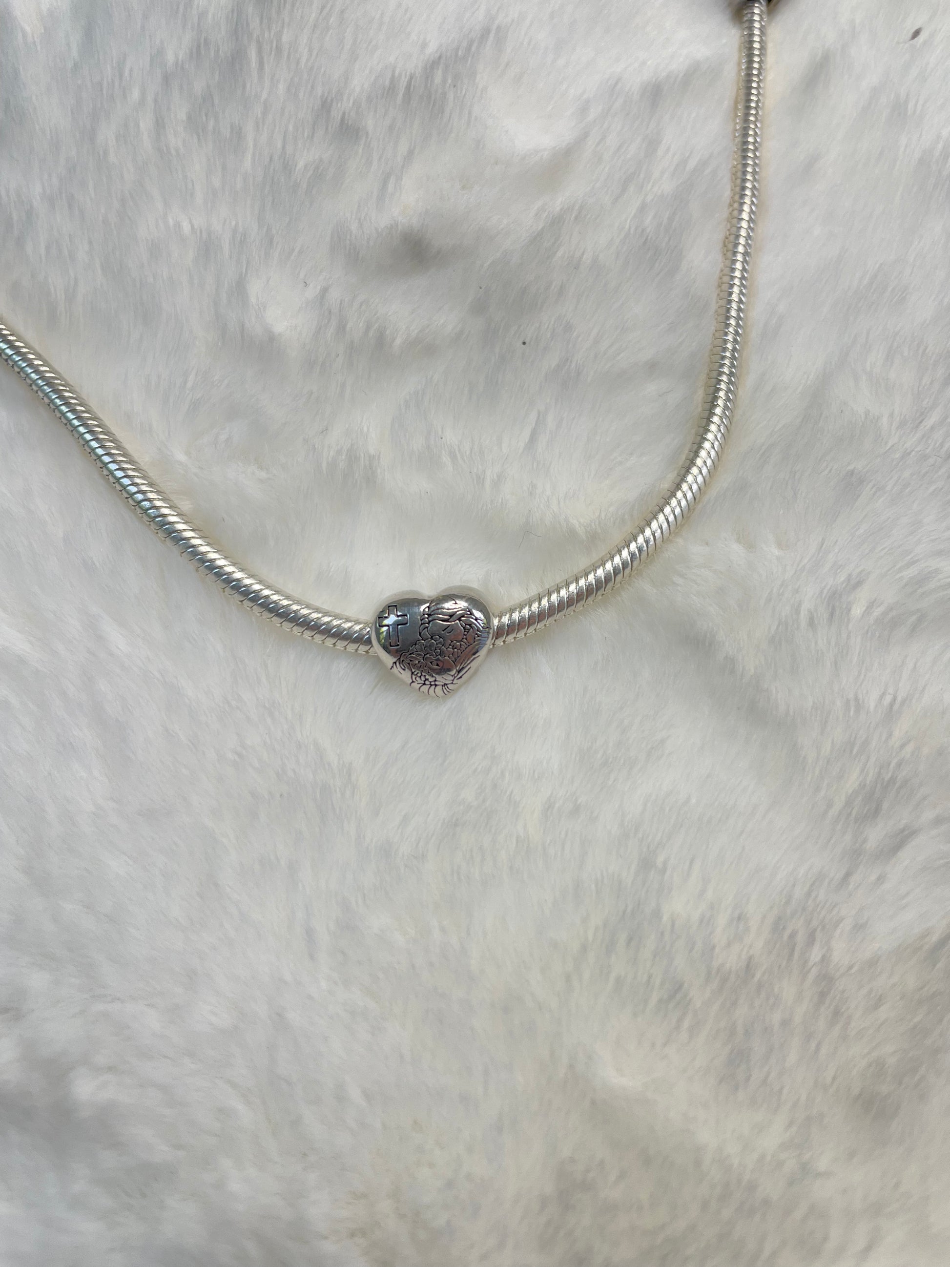 Honra tu fe con este conmovedor charm de Plata 925. La figura de Jesús con una ovejita , elegantemente diseñada sobre una base en forma de corazón, simboliza su amor incondicional y su sacrificio. Agrega esta pieza a tu pulsera para tener un recordatorio diario de su presencia y su mensaje de esperanza.