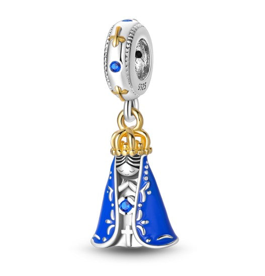 Expresa tu devoción con este elegante charm colgante. Con un hermoso manto azul y una deslumbrante corona dorada, este charm es un recordatorio de la realeza y pureza de la Virgen. Agregalo a tu pulsera tipo Pandora y lleva un símbolo de tu fe y protección personal.