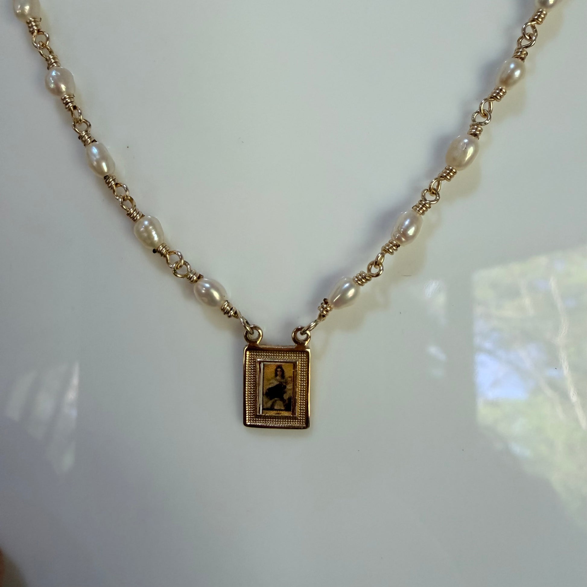 Collar- Virgen engarzado en perlas Alambrismo