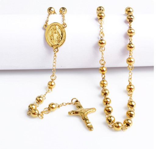 Un accesorio lleno de gracia. Este rosario de acero plateado cuenta con la Medalla Milagrosa, un símbolo de la intercesión de la Virgen María. Con su doble engarce para mayor seguridad, esta pieza te recordará el amor y la protección divina que te rodean en todo momento.