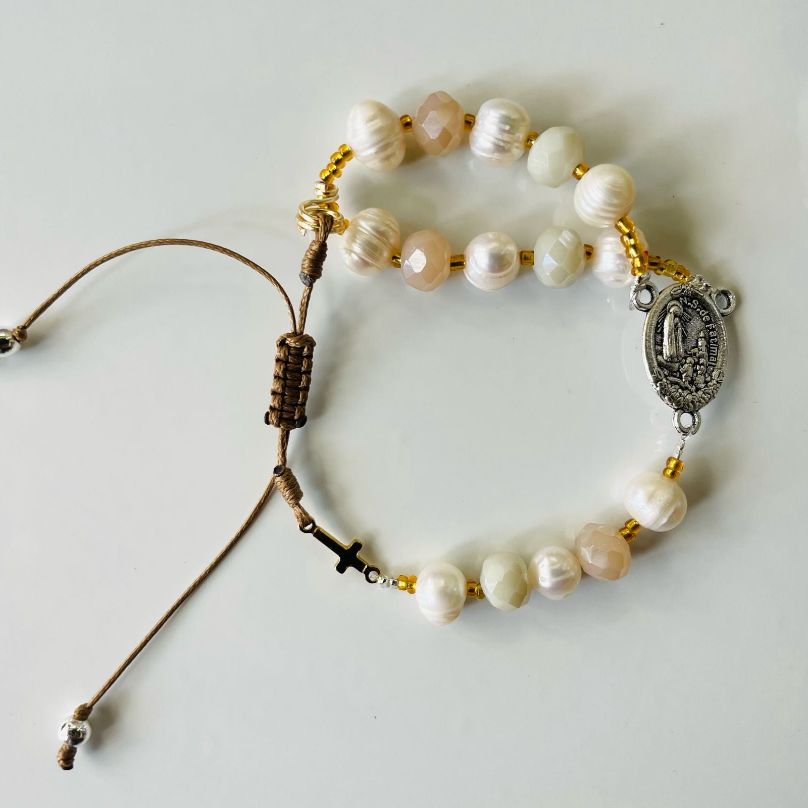 Ajustable para cualquier tamaño de muñeca, es la manera perfecta de llevar tu oración y devoción contigo a donde vayas.
