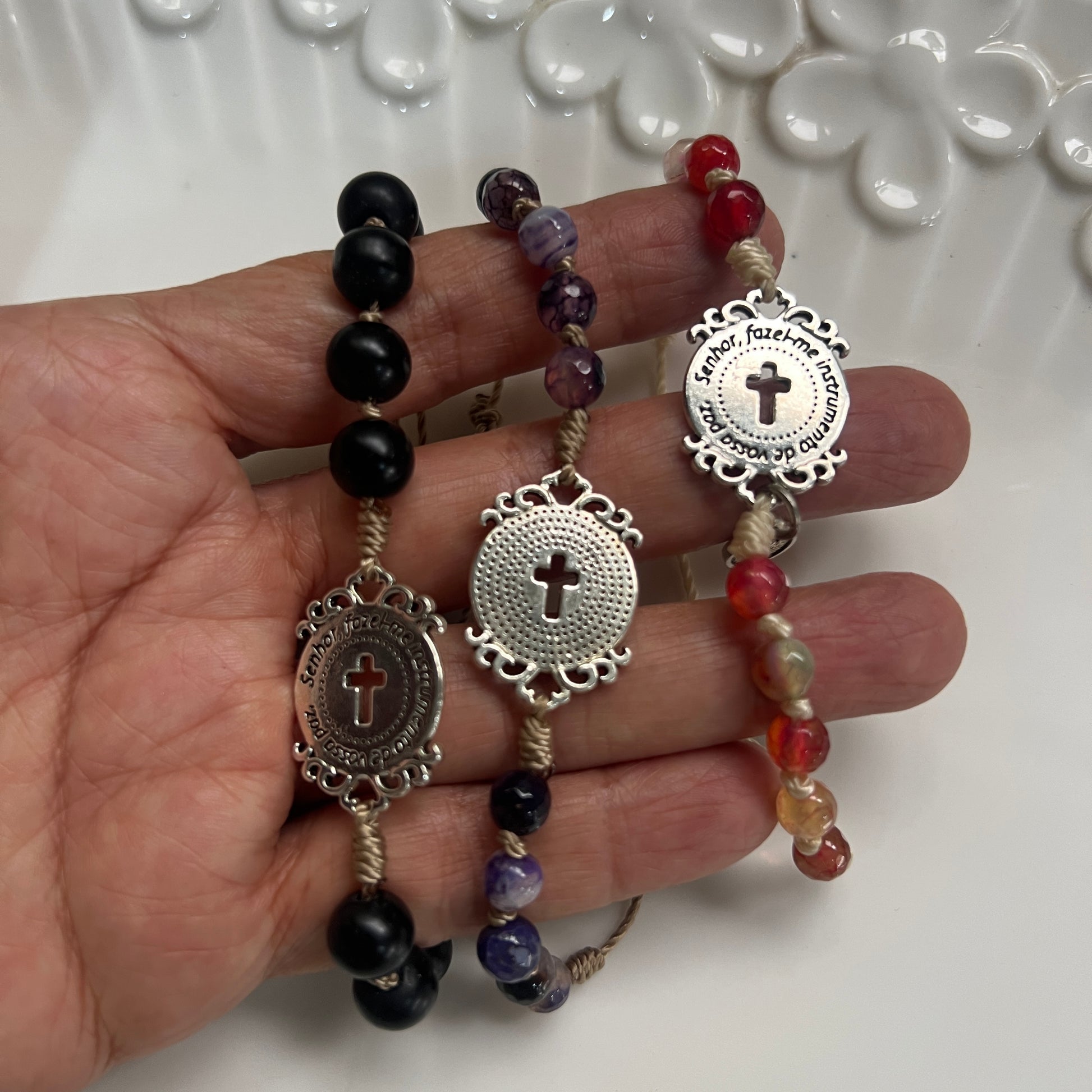 A rosary honoring Saint Francis of Assisi, protector of nature. Made with 6mm agate beads, this adjustable accessory is designed to bring you peace and connection. Its strong Franciscan knot and macramé clasp ensure it accompanies you every step of the way. A personal reminder of harmony with creation.