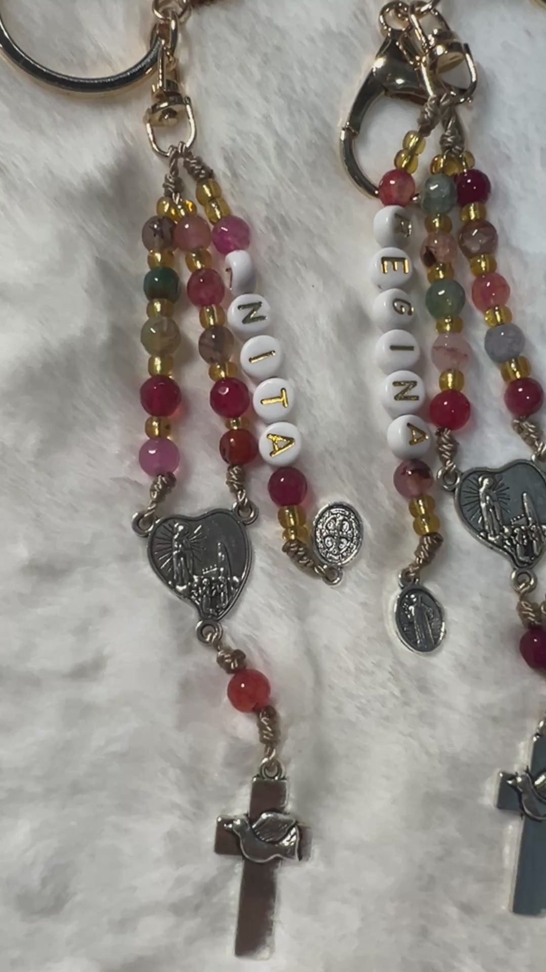 Elegancia y versatilidad en un solo accesorio. Este denario de cristales de 8mm es perfecto para tu día a día. Gracias a su broche grande, puedes sujetarlo fácilmente a tu cartera o al espejo retrovisor del auto, llevando contigo un recordatorio de tu fe a donde quiera que vayas. Un detalle personalizado que te conecta con tu devoción.
