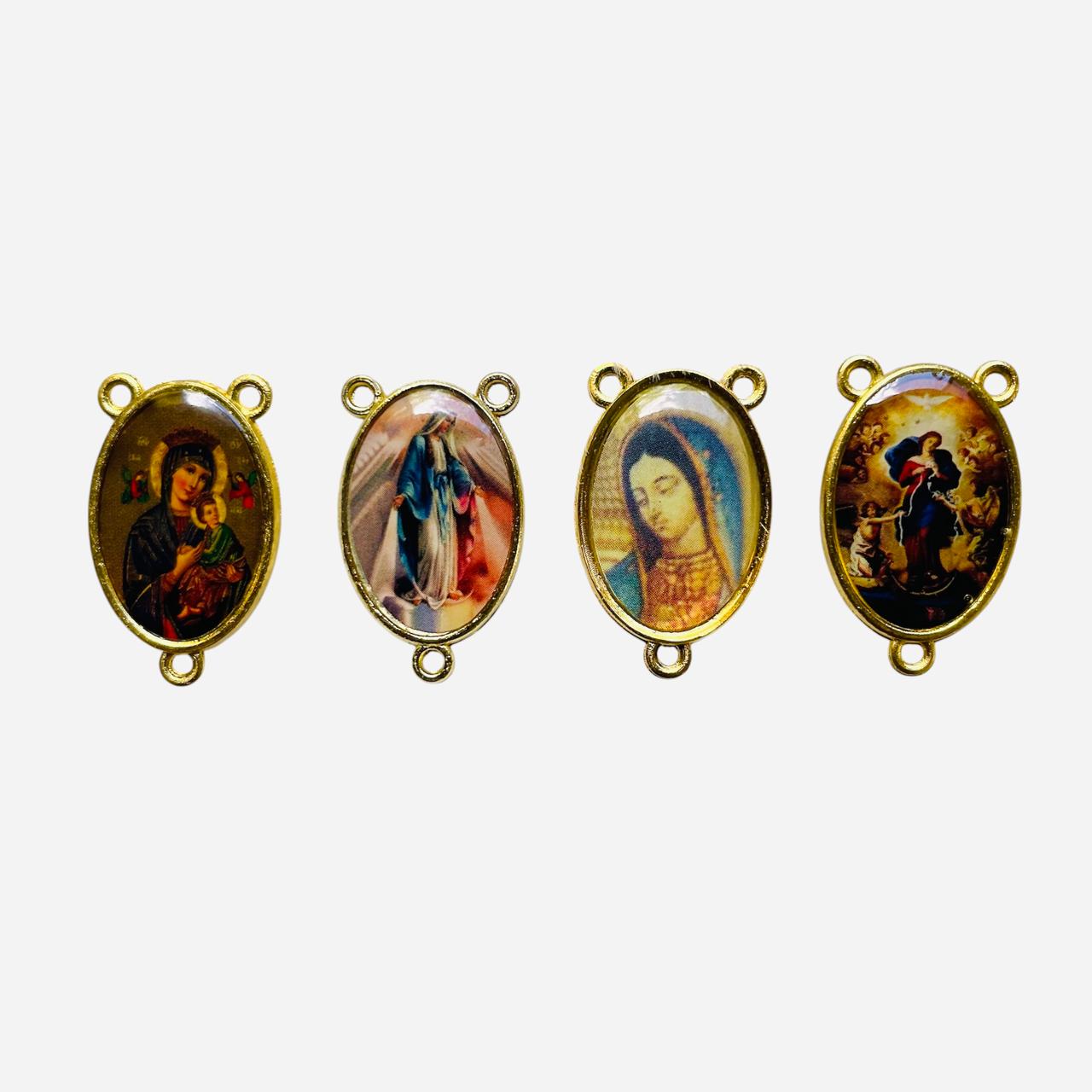 Crea rosarios llenos de fe y belleza con nuestra pieza central en Pewter. Esta medalla, conocida como 'encuentro', es el punto de unión perfecto para tus creaciones. Su diseño, con un acabado dorado, irradia calidez y elegancia, mientras que el material de Pewter de alta calidad garantiza que tu rosario sea una pieza duradera y resistente. Con un tamaño de 2.3 cm, es ideal para ser el corazón de cualquier rosario artesanal.