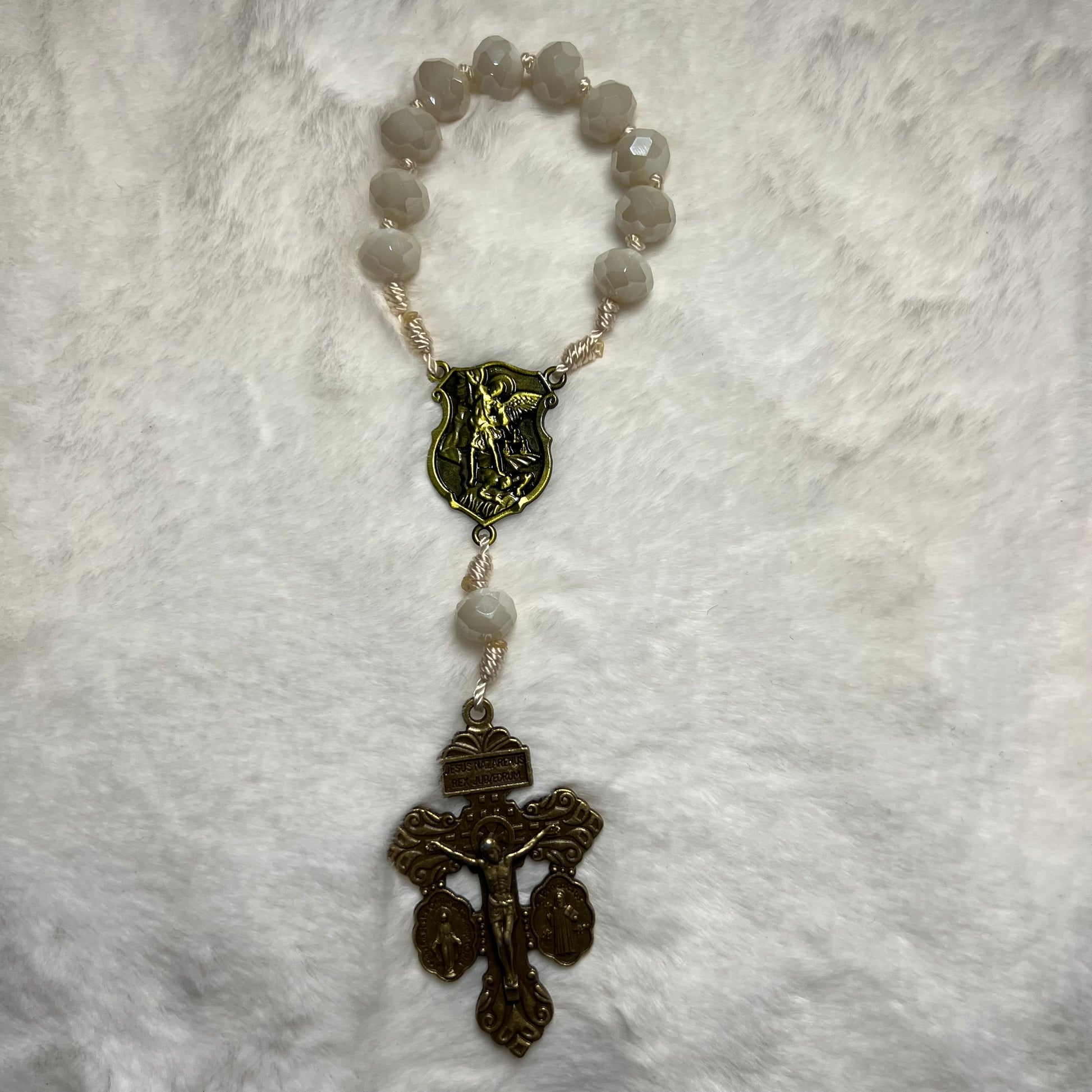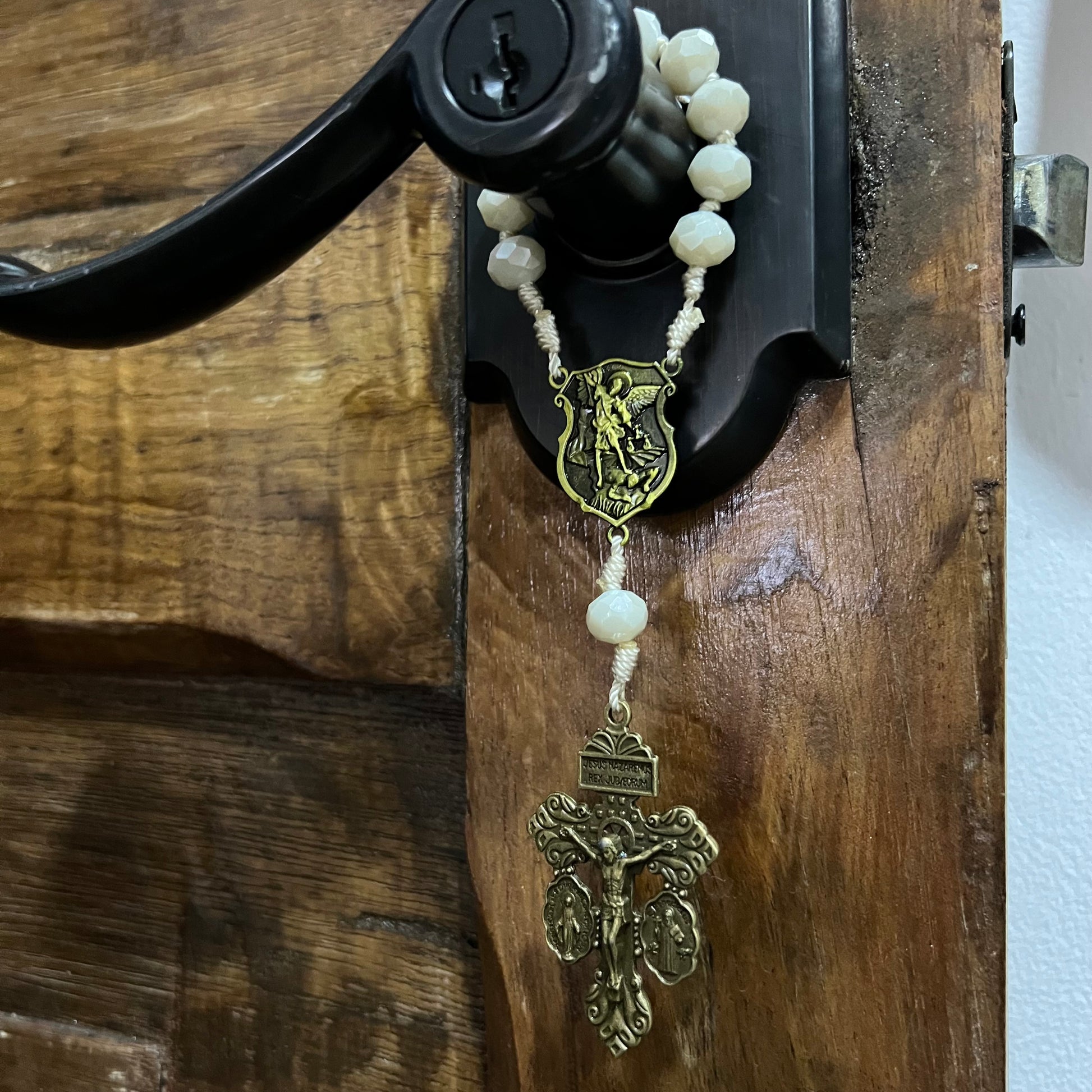 Beautiful blessed rosary, with a medal of St. Michael the Archangel and the Cross of Forgiveness.