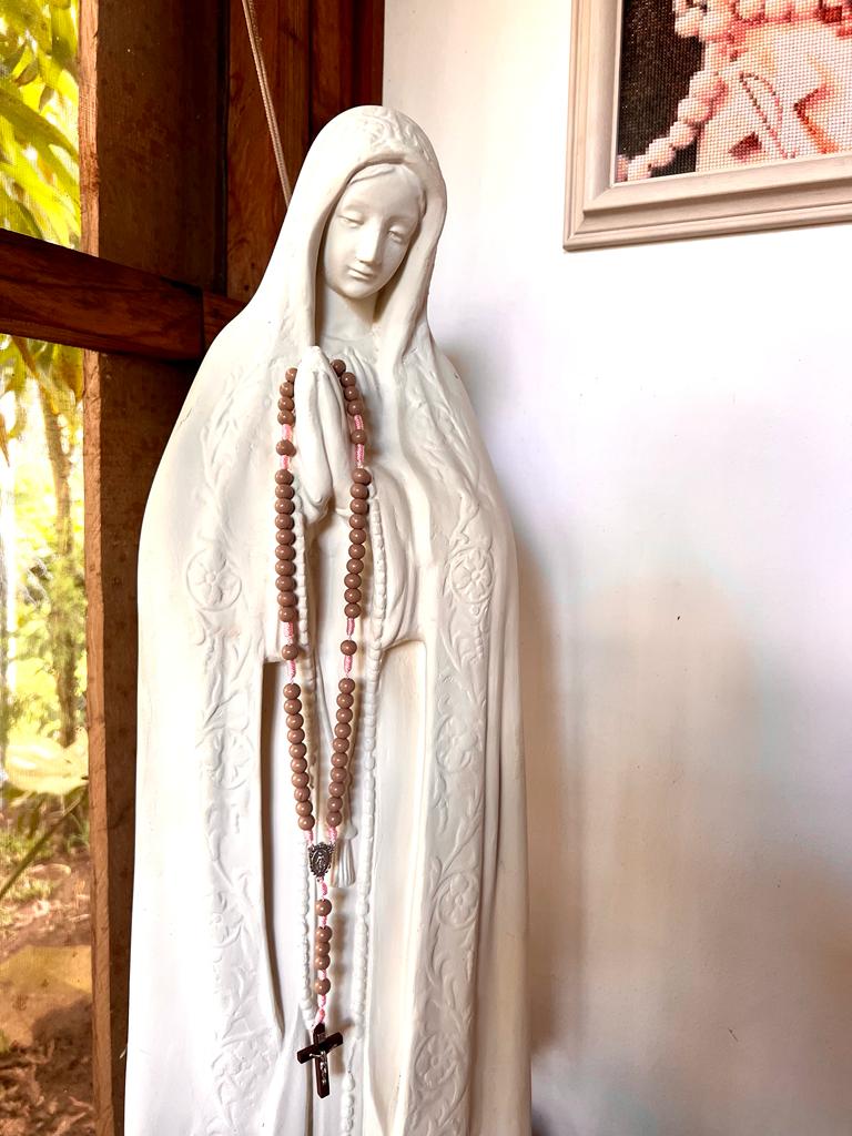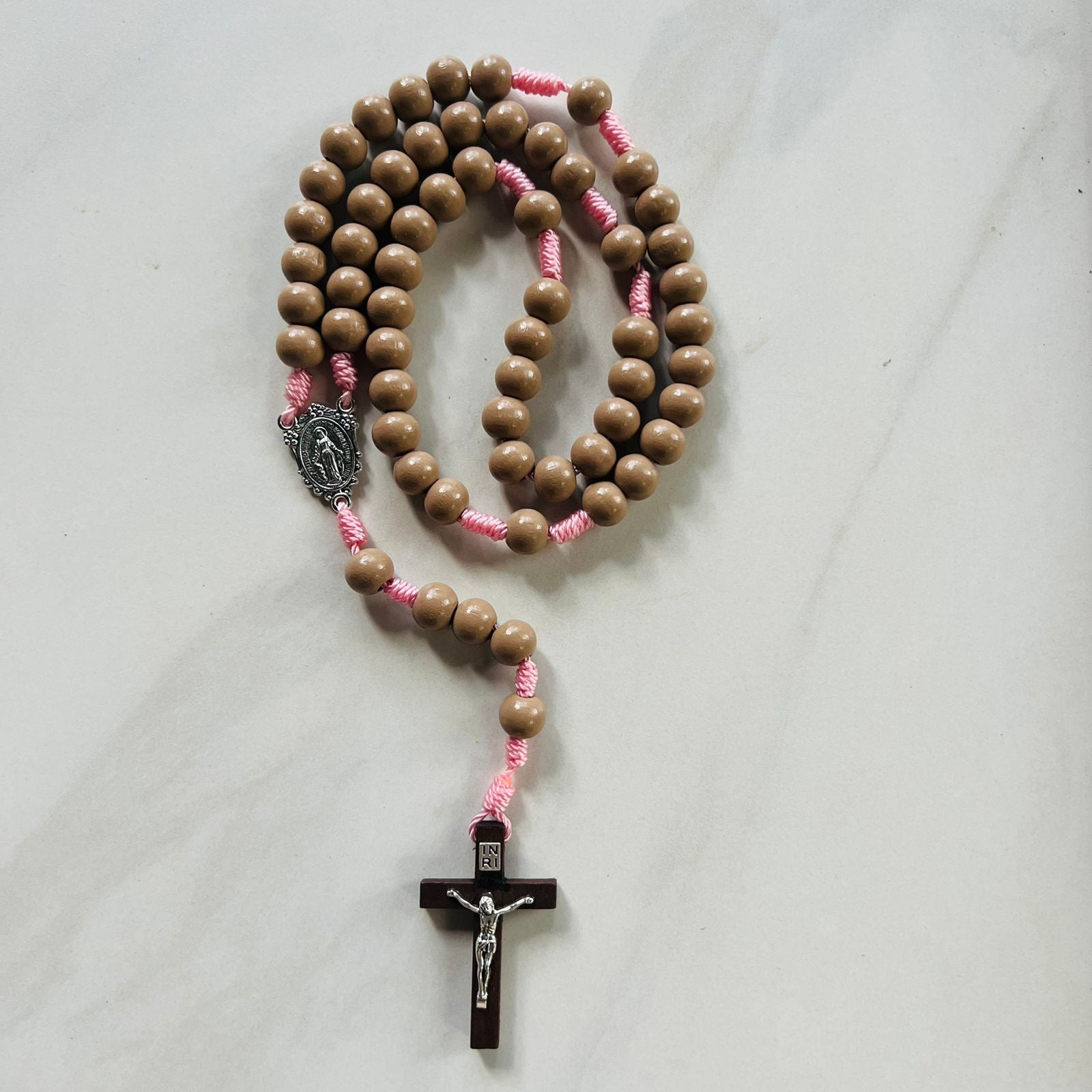 Un rosario con una presencia sólida, diseñado para una fe inquebrantable. Cada una de las cuentas de madera de 10mm de esta camándula de 43 cm se siente robusta en tus manos, ayudándote a concentrarte en tus misterios.
