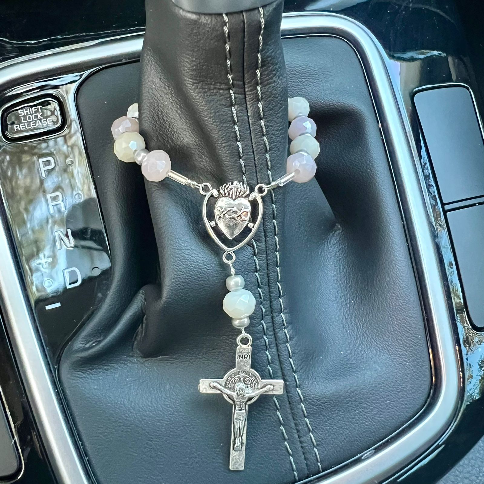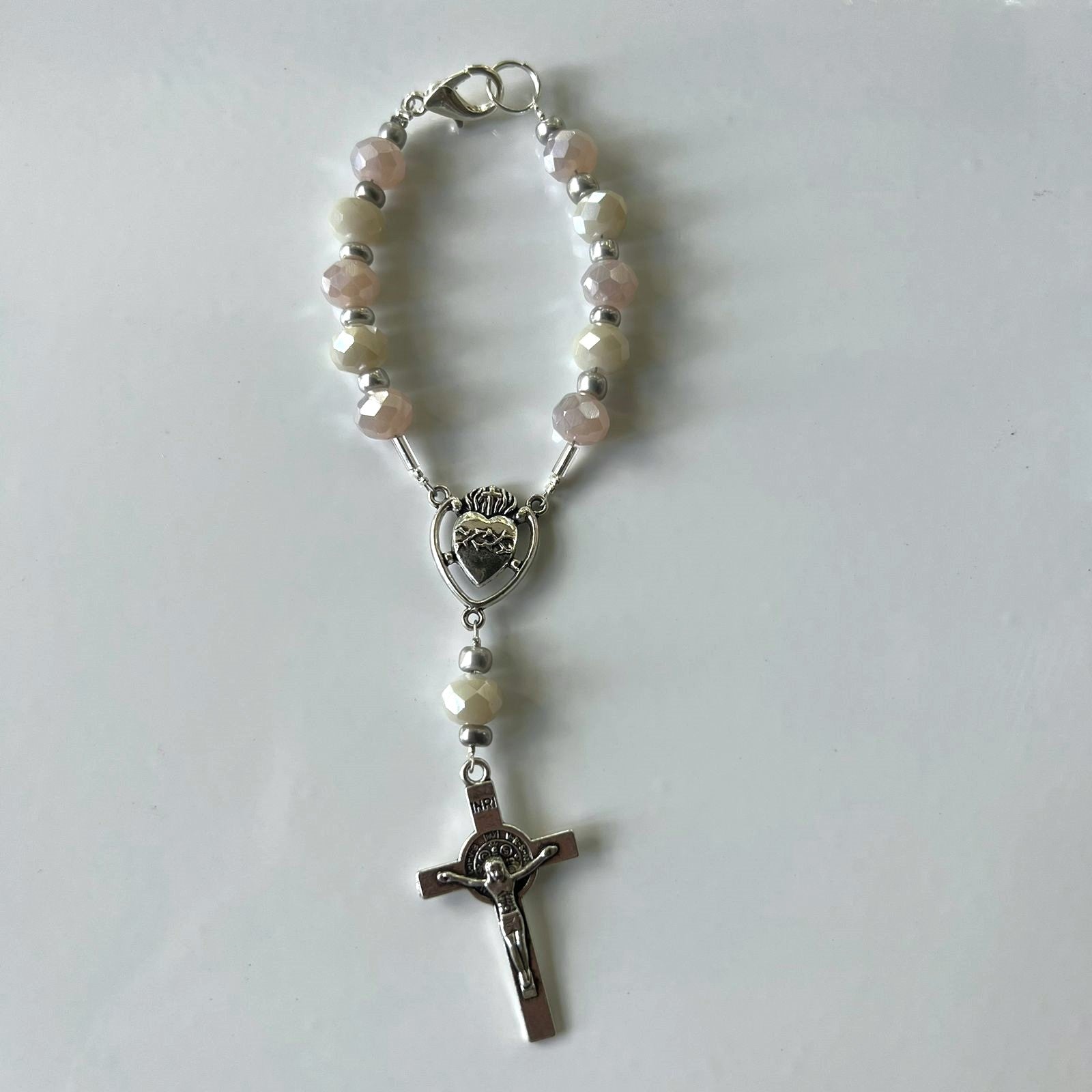 Este denario de cristales de 8mm es tu compañero versátil. Gracias a su práctico broche, puedes colgarlo fácilmente en tu cartera, en tu auto o en cualquier lugar especial. Un recordatorio elegante y discreto de tu fe y devoción en todo momento.