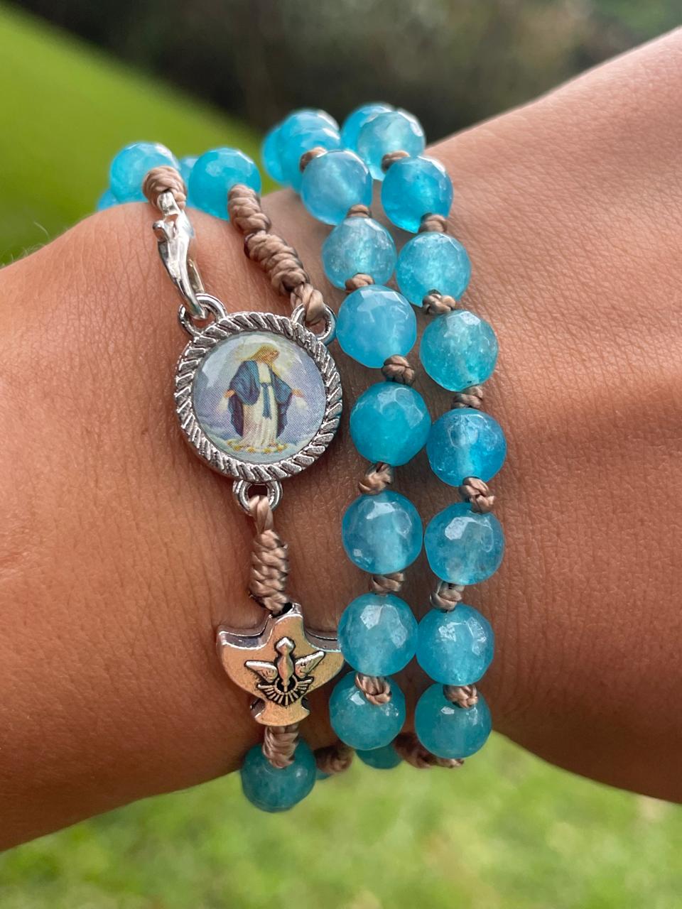 Tu rosario, a tu manera: Elige el color que más resuene contigo y la forma en que quieres llevarlo: como una pulsera, un collar o una camándula, este rosario se crea especialmente para tu devoción.