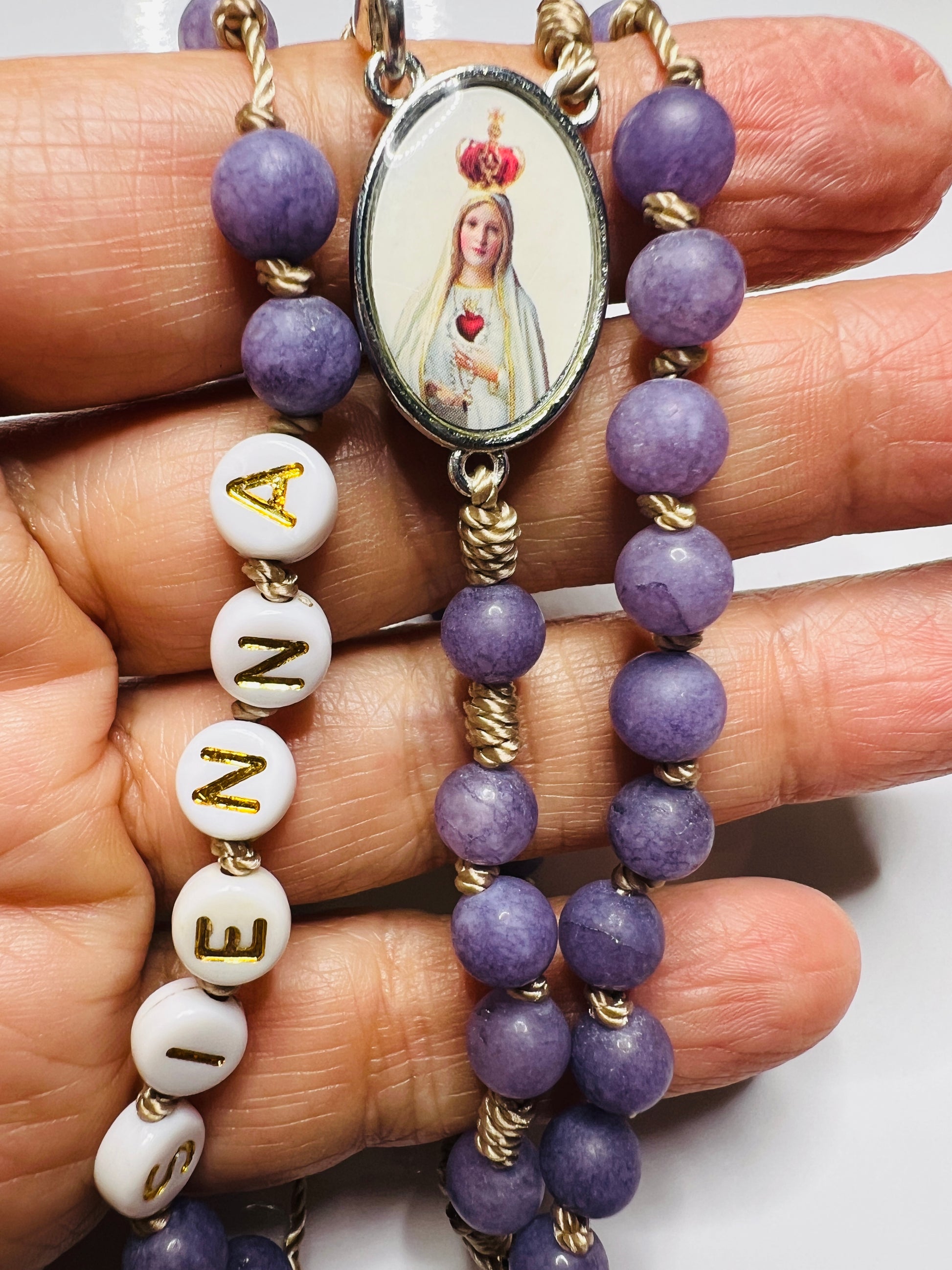 Choose your favorite Mother and Queen rosary bracelet with 6 mm beads, made with love and prayer.