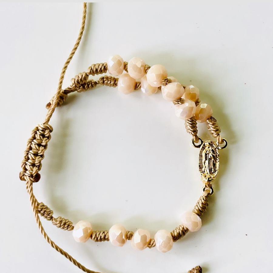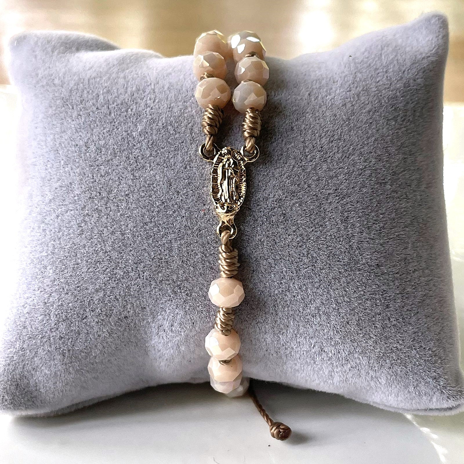 A minimalist accessory full of faith. This adjustable rosary bracelet is crafted with delicate nude-toned crystals that give it a modern and discreet touch.