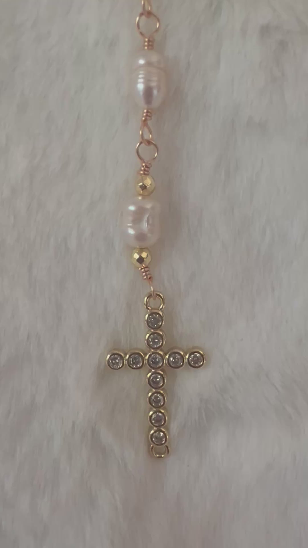 A symbol of purity that accompanies you. This handcrafted rosary , made with beautiful 7mm white pearls and accessories in a dazzling gold finish, is the perfect piece to carry your faith with you. Each pearl is carefully wired to ensure its durability.