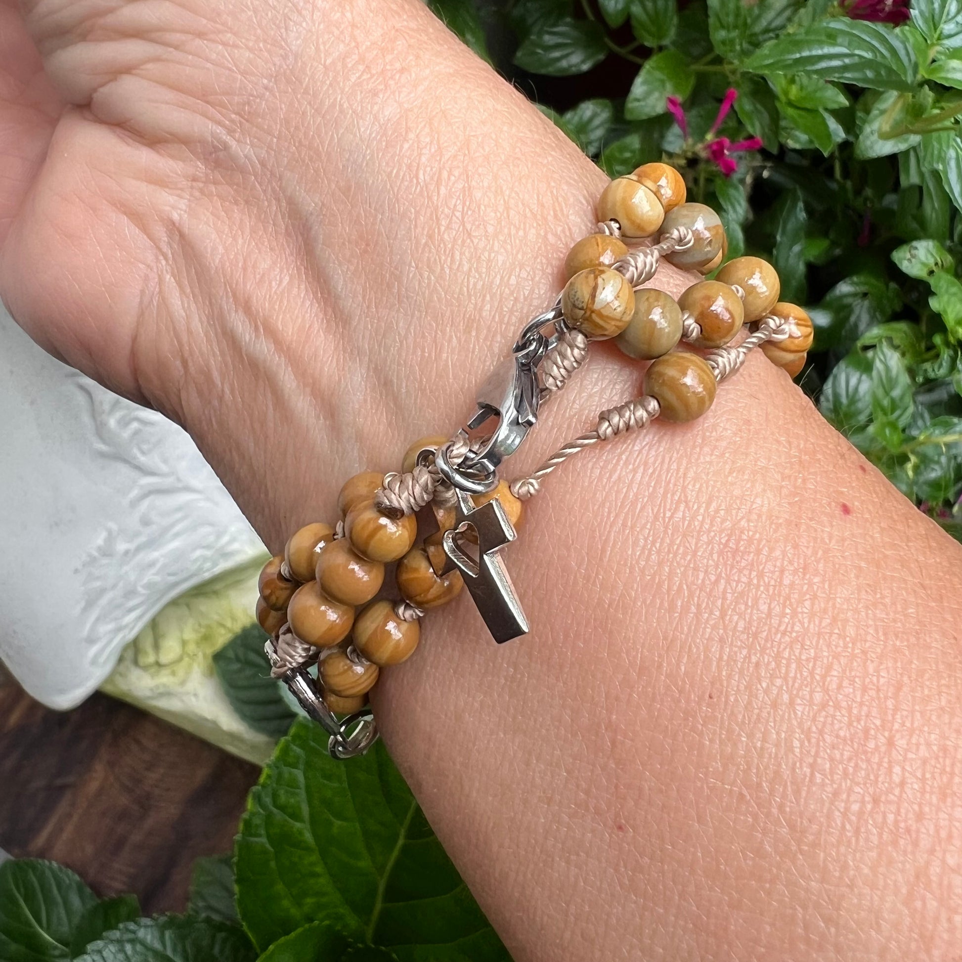 Usalo como Rosario Pulsera, collar, y lo mas importante para rezar.