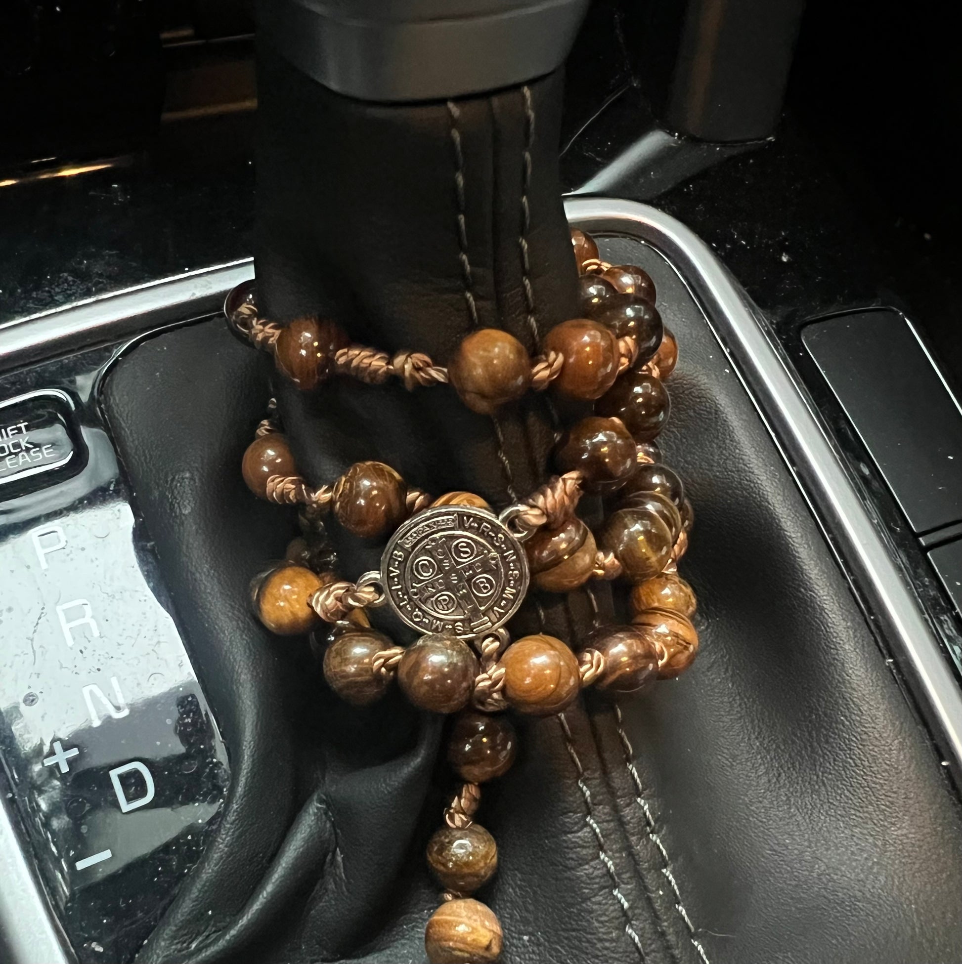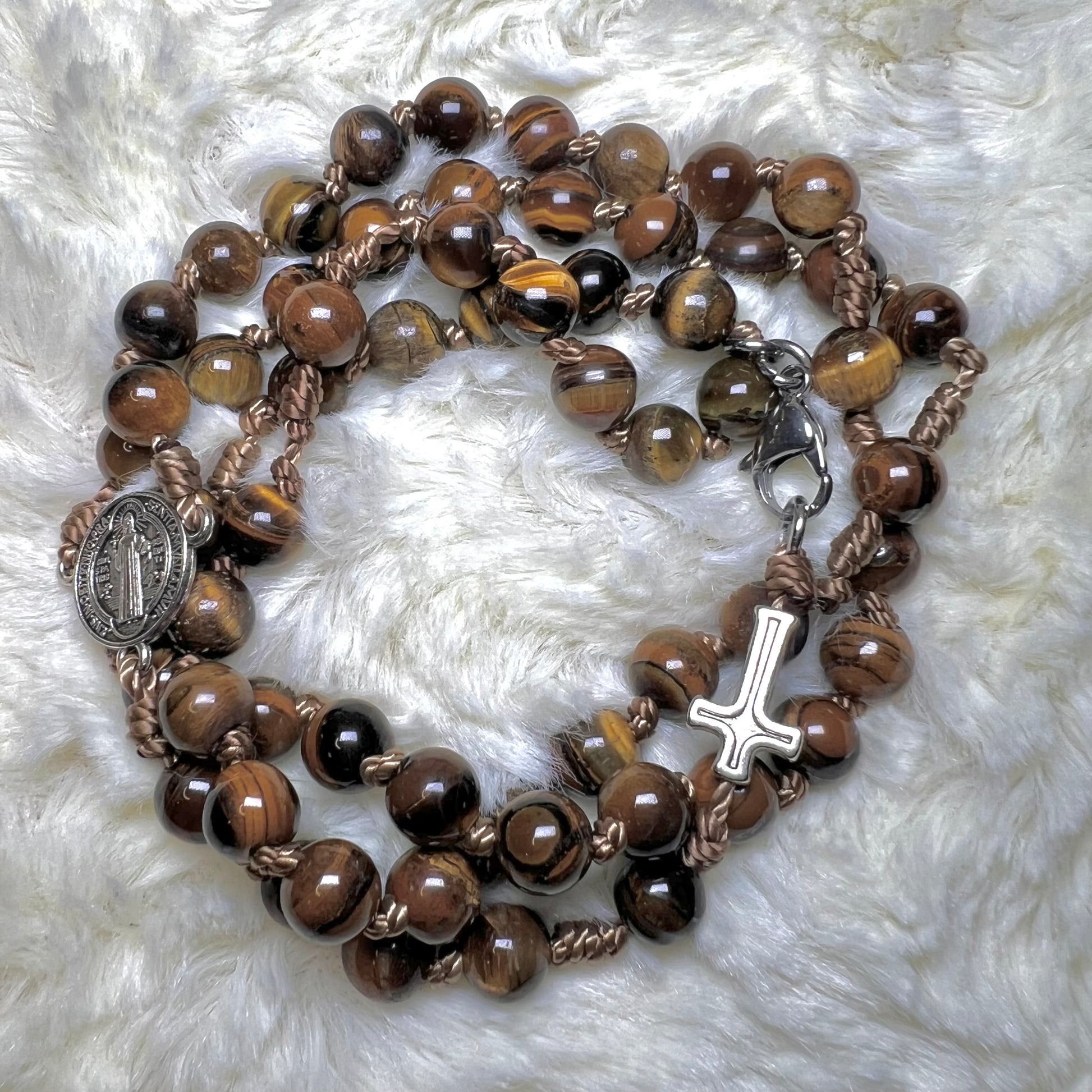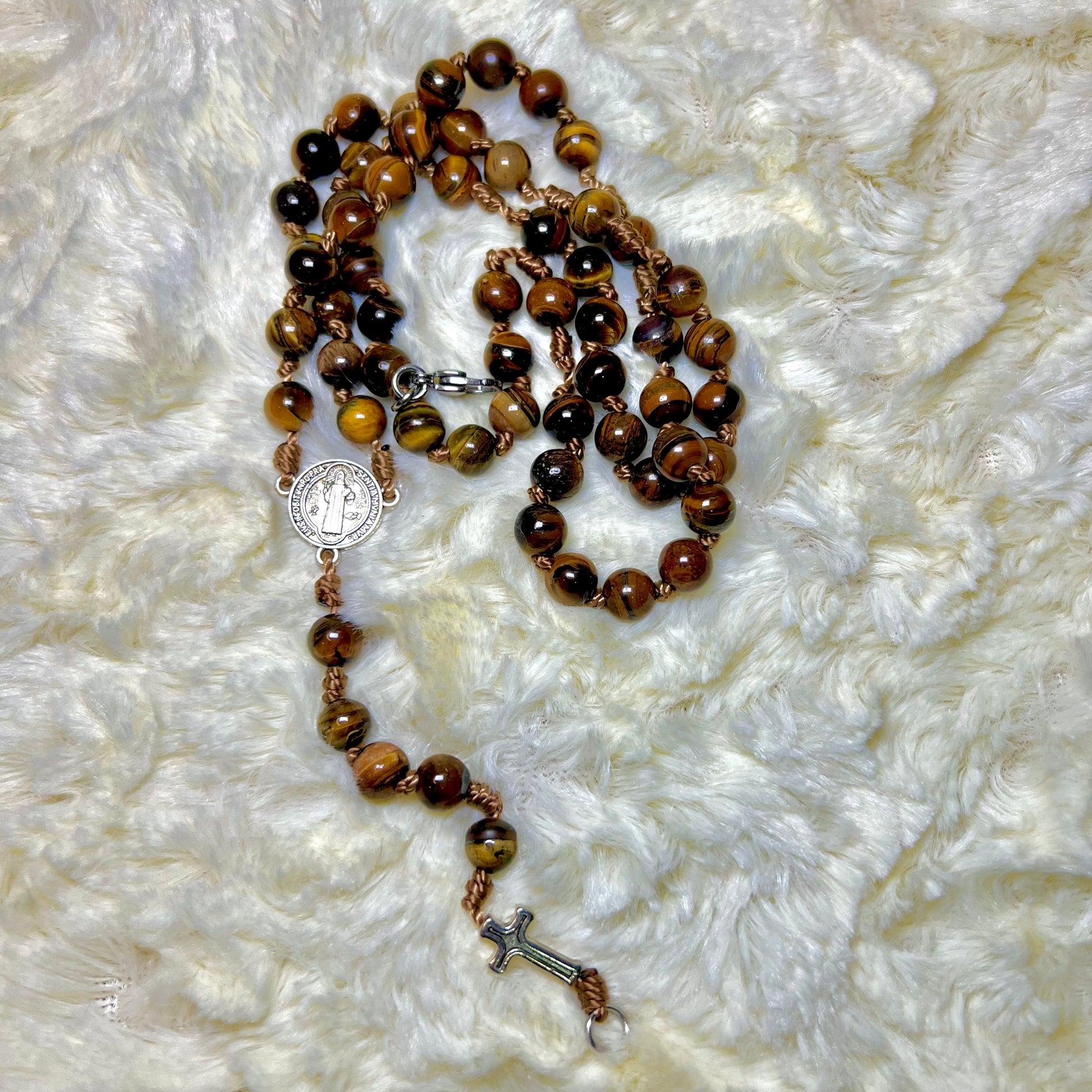 Rosario en piedras ojo de tigre Cafes de 8mm engarzado den cordel .
