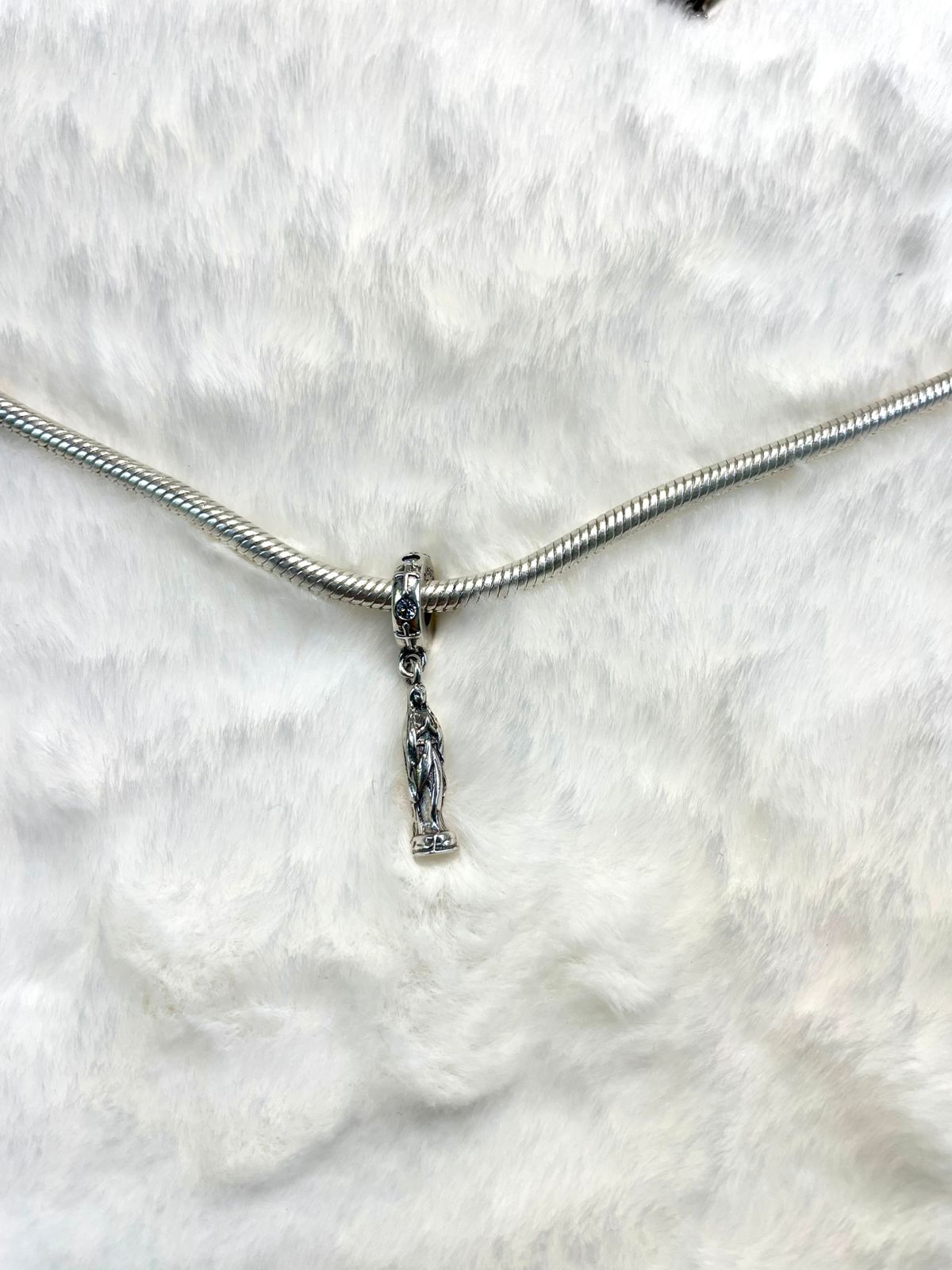 Honra a la Virgen de Lourdes con este exquisito charm colgante de plata 925. Cada detalle de este charm ha sido diseñado para evocar su poder de sanación y milagros. Es la pieza perfecta para añadir a tu pulsera y llevar contigo un símbolo de esperanza, protección y fe inquebrantable.