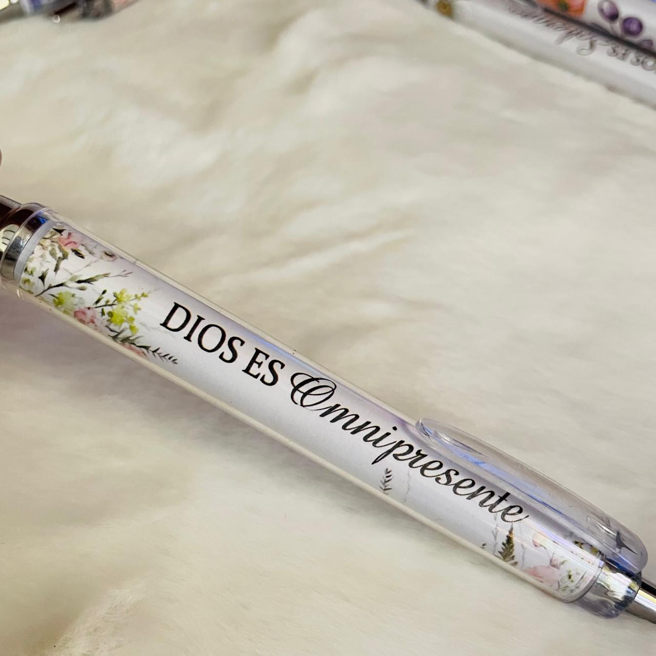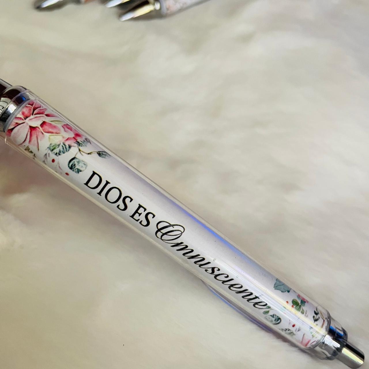 Escribe con fe y devoción. Nuestro elegante lapicero de tinta negra es más que una herramienta; es un recordatorio constante de tu conexión espiritual. Grabado con una poderosa y significativa frase dirigida a Dios (ej. Dios es omnipotente, Dios es soberano) este lapicero te inspirará en cada palabra que escribas. Un regalo perfecto para un amigo o un compañero de fe, o para agregar un toque de inspiración a tu propio escritorio.