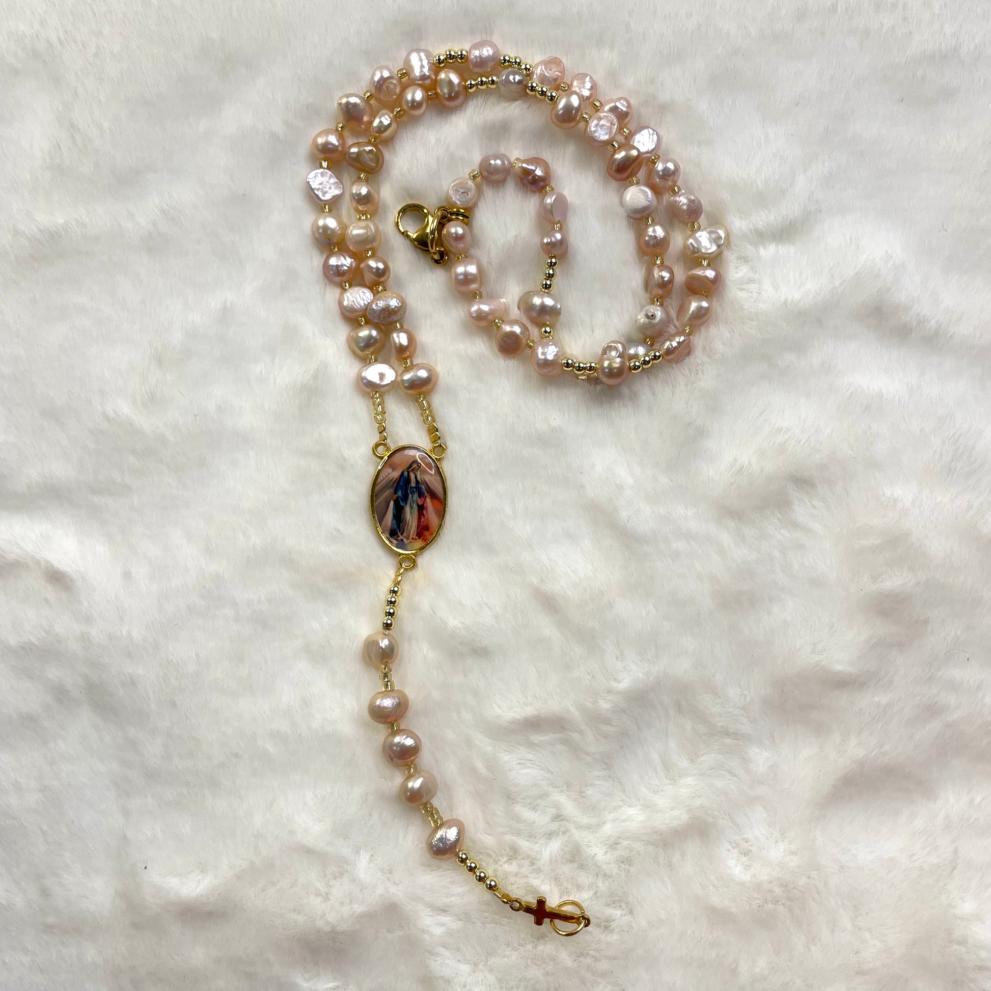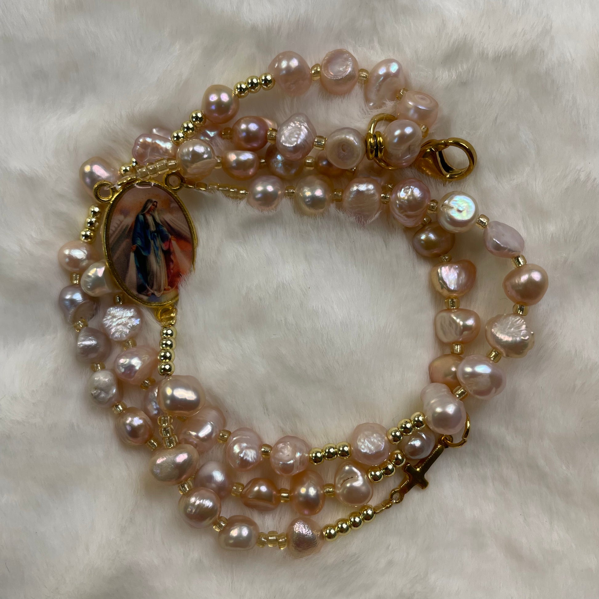 Rosario Celestial de Perlas. Hecho a mano para la devoción de hoy.